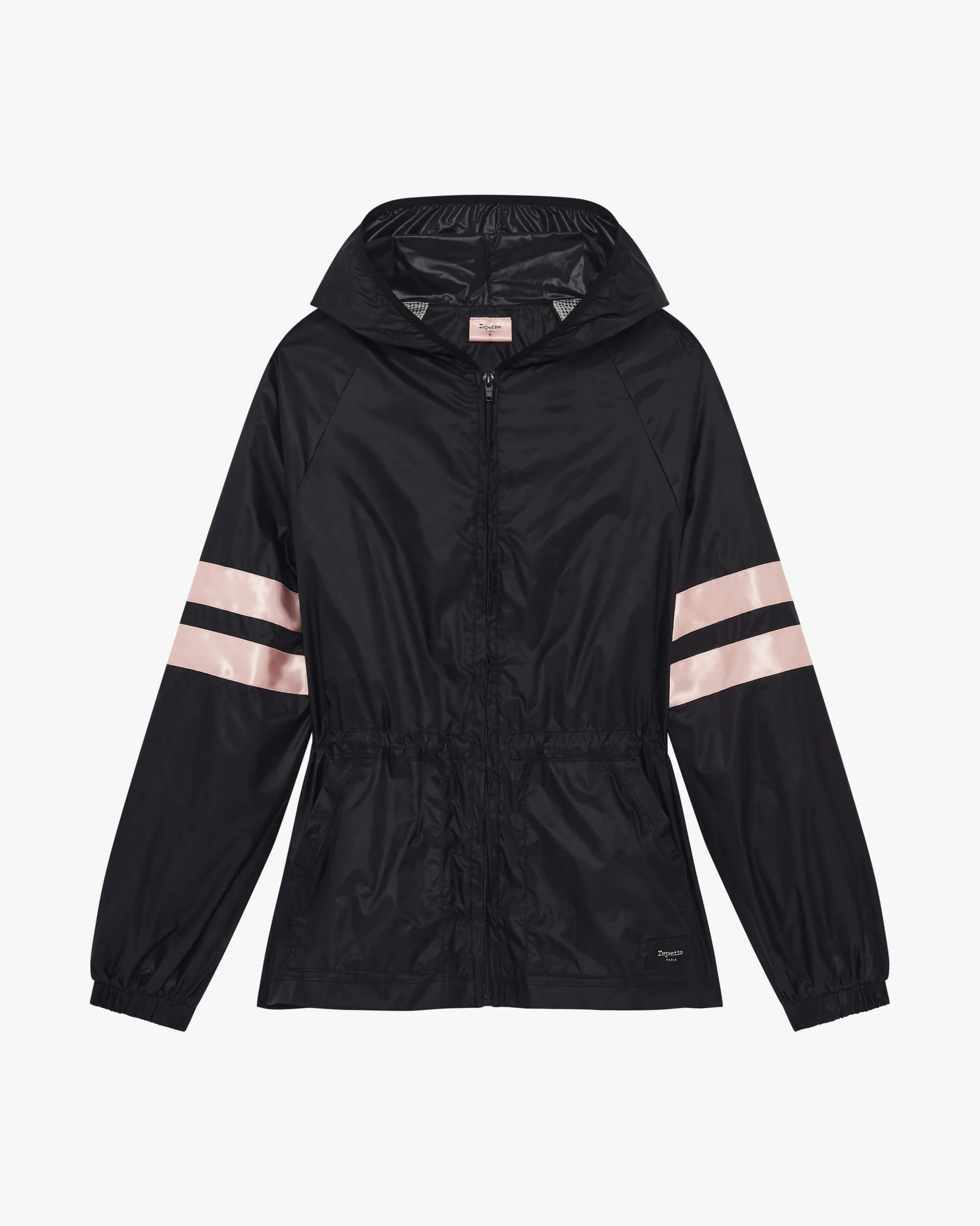 This lightweight nylon fabric provides unmatched comfort and lightness, while offering great fluidity and protection against the wind. Material: Polyamide 100% polyamide - Doublure 100% Polyamide Color: Black/Silver Details: This lightweight windbreaker embodies sporty and feminine elegance in any season. Its relaxed fit, adjustable waist, and front patch pockets, combined with Repetto's iconic satin stripes, offer the perfect balance between style and functionality. • Fully lined for better absorption • Adjustable drawstring at the waist • Front patch pockets Ref: S0699-410-XS