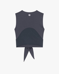Designed in a sleek & sculpting technical fabric, this active sleeveless top is an adaptation of the iconic ballet outfit. With its wrap-over look and large strips to tie at the back, it ensures medium support while practicing. Wrap-over style with V-neck line Open back with mesh fabric Strips to tie for perfect adjustment Light supportMaterial:Micro fibre Composition:Main : 83% Polyamide - 17% Elastane Mesh : 91% Polyamide - 9% Elastane Color:Carbone Original country:Tunisia Ref: S0665-412-XS Product details This sleek & sculpting technical fabric is comfortable and ensures a medium support during practice.