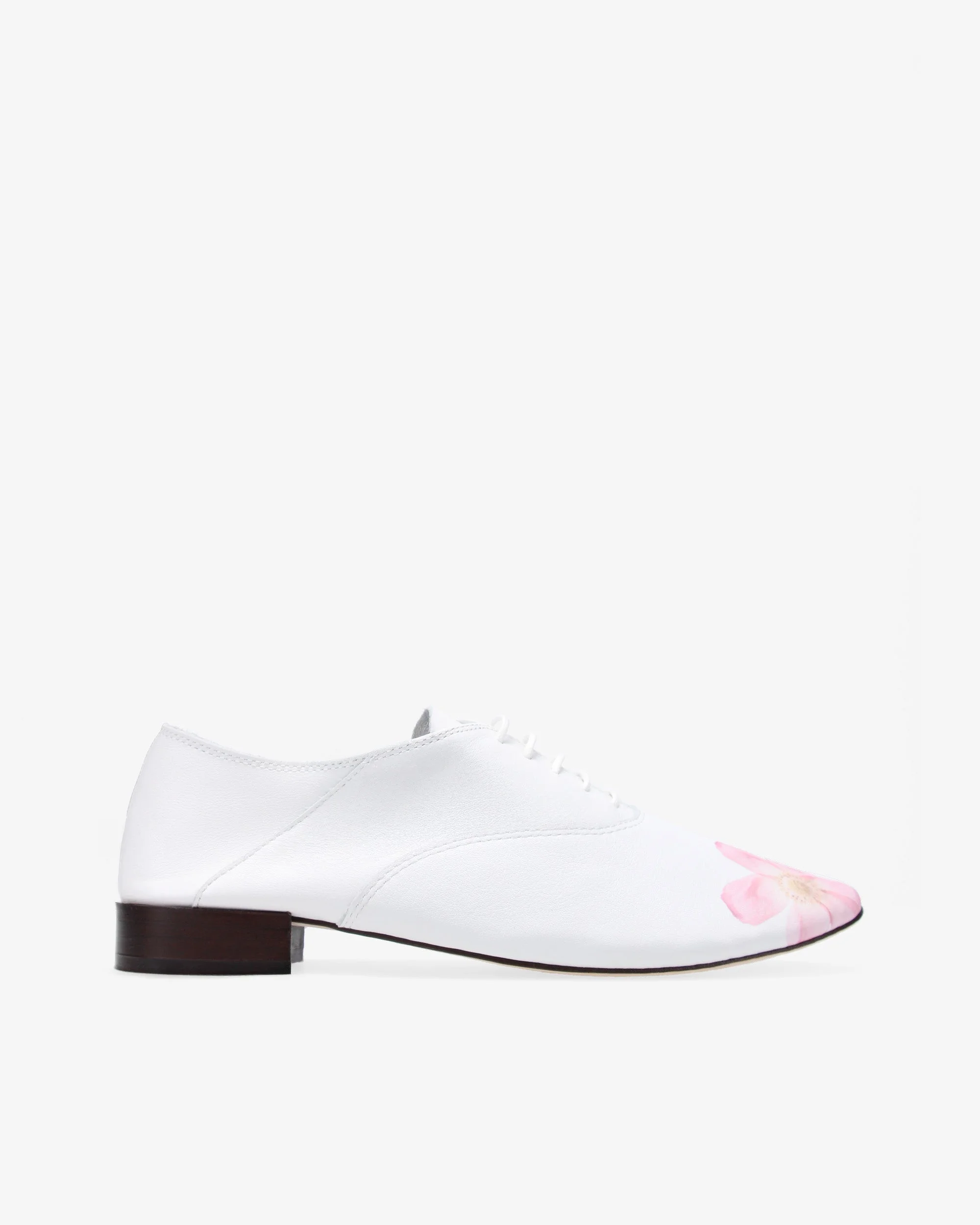 The Zizi oxford shoe, created for dancer Zizi Jeanmaire, Rose Repetto's daughter-in-law, and made famous by Serge Gainsbourg in the 1970s, is one of the Maison's iconic products. Made using the unique "stitch-and-return" technique in our ateliers in France, this style combines comfort, lightness and elegance. Material : Cowhide leather Color : White Heels height: 2 cm Country of origin: France Details: Cowhide leather insole. Unlined. Leather wrapped heel. Stitch-and-return. Leather sole (also available in rubber sole). Benefits of the selected manufacturing process: Stitch-and-return is the House's historic manufacturing process, perfected by Madame Rose Repetto in 1947. The sole is sewn to the top of the shoe, inside out, before being turned inside out. This technique gives the shoe unequalled suppleness and comfort. Ref: V377HRB-050-34 Product details Cowhide leather insole. Unlined. Leather wrapped heel. Stitch-and-return. Leather sole (also available in rubber sole).