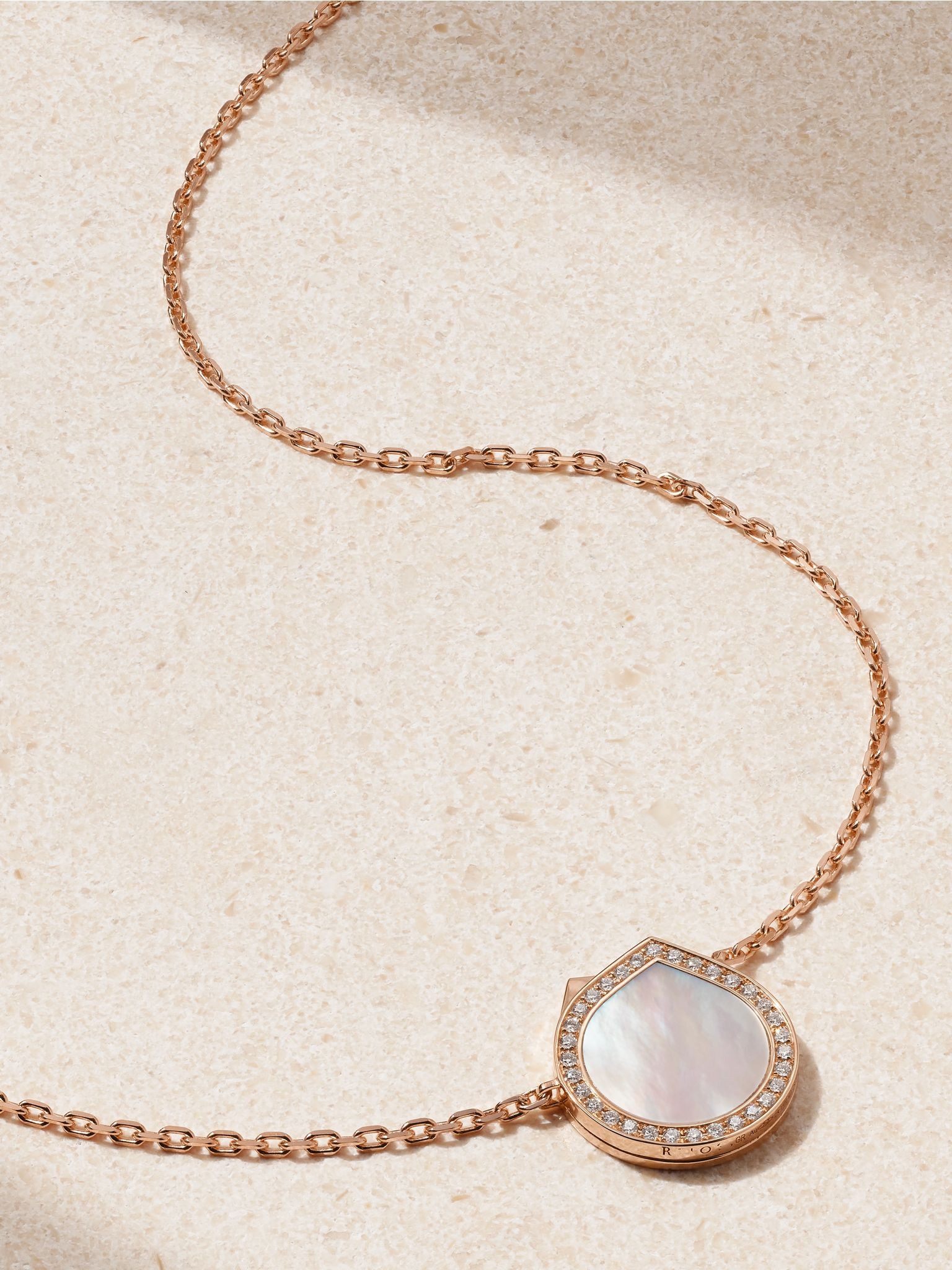 Repossi's fine jewelry is backed by three generations of knowledge and expertise. Cast from 18-karat rose gold, this 'Antifer' necklace is strung with a pretty mother-of-pearl pendant illuminated by 0.18-carats of light-reflecting diamonds. Wear yours for day and evening occasions alike. Details & Care - Diamonds, total weight: 0.18-carats - Lobster clasp fastening - This piece has been certified in accordance with the Hallmarking Act 1973 - Mother-of-pearl: Australia