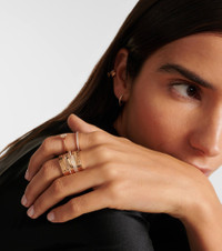 The Antifer collection is Repossi's signature line playing with the contrast of smooth curves and sharp tips. This ring is crafted from 18kt rose gold and comprises ten bands that look as if they'd been stacked. Four of them are partially encrusted with scintillating 0.35ctw round-cut diamonds in a pavé setting. Product Details - Material: 18kt rose gold - Made in Italy - Stone I: diamonds, round-cut, pavé setting - Designer color name: Pink Gold - Item number: P00842977 Size & Fit - Max. width 18mm-0.7"