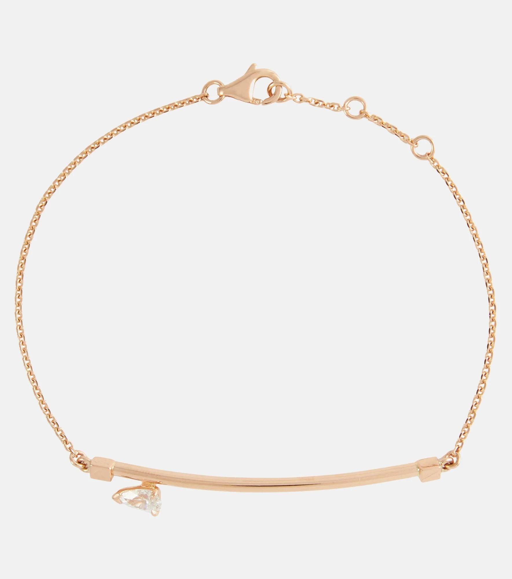 This contemporary 18kt rose gold bracelet is part of Repossi's Serti Sur Vide collection and comes adorned with a 0.25ct pear-shaped diamond. Made in Italy from a delicate circle chain, this piece has a lobster clasp fastening and adjustable length. Product Details - Material: 18kt rose gold - Stone I: diamond, pear-shaped - Closure: lobster-clasp fastening - Made in Italy - Designer color name: Pink Gold - Item number: P00627377 Size & Fit - Adjustable length - Min. width 1mm-0.05" - Max. width 5mm-0.2" - Max. circumference 16,5cm-6.5"