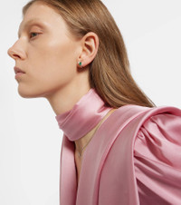 Product Details - Material: 18kt white gold - Stone III: diamonds, round-cut, pavé setting - Stone III carat total weight (ctw): 0.08 - Single hoop earring - For pierced right ear - Designer color name: White Gold - Made in Italy - Stone I: diamond, pear-shaped, prong setting - Stone I carat total weight (ctw): 0.2 - Stone II: emerald, pear-shaped, prong setting - Stone II carat total weight (ctw): 0.33 - Item number: P00933694 Size & Fit - Max. width 6mm-0.25" - Diameter 7mm-0.3"