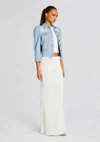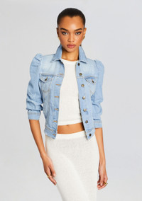 The Ada Jacket is an everyday Retrofete staple. A chic twist on a classic wardrobe essential, the denim jacket features puffed cropped sleeves and a cinched back for a tailored fit. We recommend sizing up in this style. Shown here in Light Blue Stone. - 100% Cotton - Made in Italy - Model size XS is 5'10" wearing size S - Model size L is 5'11" wearing size L - Padded shoulders - Style No. HL20-2055