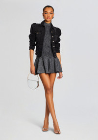 The Ada Jacket is an everyday Retrofete staple. A chic twist on a classic wardrobe essential, the denim jacket features puffed cropped sleeves and a cinched back for a tailored fit. We recommend sizing up in this style. Shown here in Faded Black. - 98% Cotton, 2% Elastane - Made in Italy - Model is 5'10" wearing size S - Padded shoulders - Style No. HL20-2055