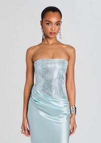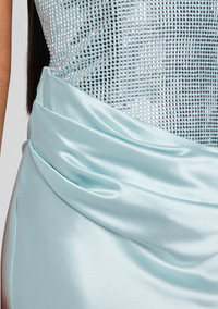 - Runs large — those who wear Medium typically prefer a Small. - 76% Acetate, 24% Polyester - Crystal embellishments - Made in China - Model is 5'10 wearing size - XS - Style No. - R25-10919