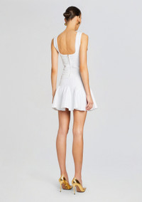 Step into sophistication and radiate elegance with every step in our Brooke Dress, crafted to exude elegance and charm. Adorned with chic buttons down the center, this dress adds a touch of refinement to your ensemble, while the flared hem lends a playful and girly vibe. Perfect for any occasion, from cocktail parties to dinner dates, this dress effortlessly combines class and femininity for a look that is both timeless and chic. Shown here in White. - 60% - Viscose, 32% - Nylon, 3% Spandex, 5% Metallic - Made in China - Model is 5'11" wearing size S - Style No. - SS24-8843