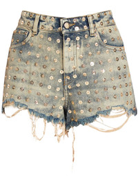 Calyx shorts Highlights - Blue - Cotton - Denim - Stud detailing - Logo patch to the rear - High-rise - Raw-cut hem - Thigh-length - Front button and zip fastening - Classic five pockets Imported Composition Cotton 100% Washing instructions Dry Clean Only