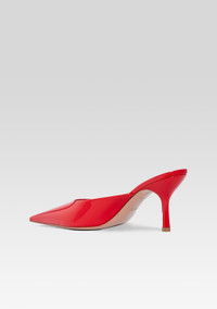 These Daphne Mules exude sophistication with their pointed toe design and luxurious red hue. Slip into these mules to elevate any outfit and command attention with their exclusive and elegant appeal. Perfect for making a statement, indulge in the world of high-end fashion with these must-have mules. - Leather upper and leather lining - 75mm heel height - Made in Italy - Style No. SH24-8703 - Please note that our Italian sizing runs small, and we recommend sizing up by one size