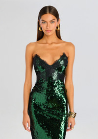 - Runs large — those who wear Medium typically prefer a Small. - All over sequin embellishment - 100% Polyester - Made in China - Model is 5'10" wearing size XS - Style No. - PF24-9510