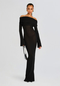 Stay effortlessly chic in SER.O.YA's Galleria Maxi Dress. With its flattering off-the-shoulder silhouette and fold over neckline, this knit maxi dress is a timeless piece that exudes sophistication. Shown here in Black. ABOUT SER.O.YA Established in 2020, SER.O.YA is a New York-based ready-to-wear label founded with the intention to upgrade and refine your wardrobe. With a focus on crafting effortlessly cool and timelessly luxurious designs—SER.O.YA creates minimalist collections powered by maximum style. Everyday essentials in the form of breathable knits, vintage inspired denim, and ultra-luxe fabrications are interchangeably worn for easy dressing that never compromises. With versatility at its core, the brand’s simple yet significant aesthetic comes through in classic silhouettes that are anything but conventional. - 77% Viscose, 23% Polyester - Made in China - Model is 5'10" wearing size XS - Style No. 3922-17