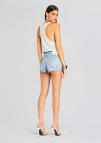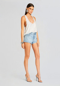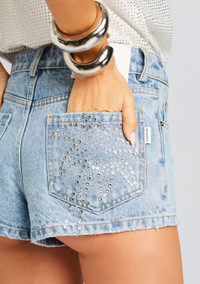 Stay cool and stylish in our Isabella Short. Made with a comfortable mid-rise fit and a timeless cutoff design, these shorts are a wardrobe staple for casual summer days, and are even extra glamourosu with the subtle yet chic embellished Palm Tree design on the back pocket. Pair them with your favorite tees, tanks, or blouses for an effortless look. Shown here in Tel Aviv Sand. - 100% Cotton - Made in China - Model is 5'10" wearing size 24 - Style No. PF24-9429