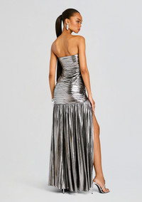 Introducing our Josie Dress – a chic and timeless ensemble that combines the allure of a body-hugging fit with the elegance of a flowy hem. Effortlessly stylish and versatile, this dress is designed to make a statement with its flattering silhouette and strapless design. Shown here in Gunmetal. - 95% Polyester, 5% Spandex - Made in China - Model is 5'10" wearing size XS - Style No. - HL24-8505