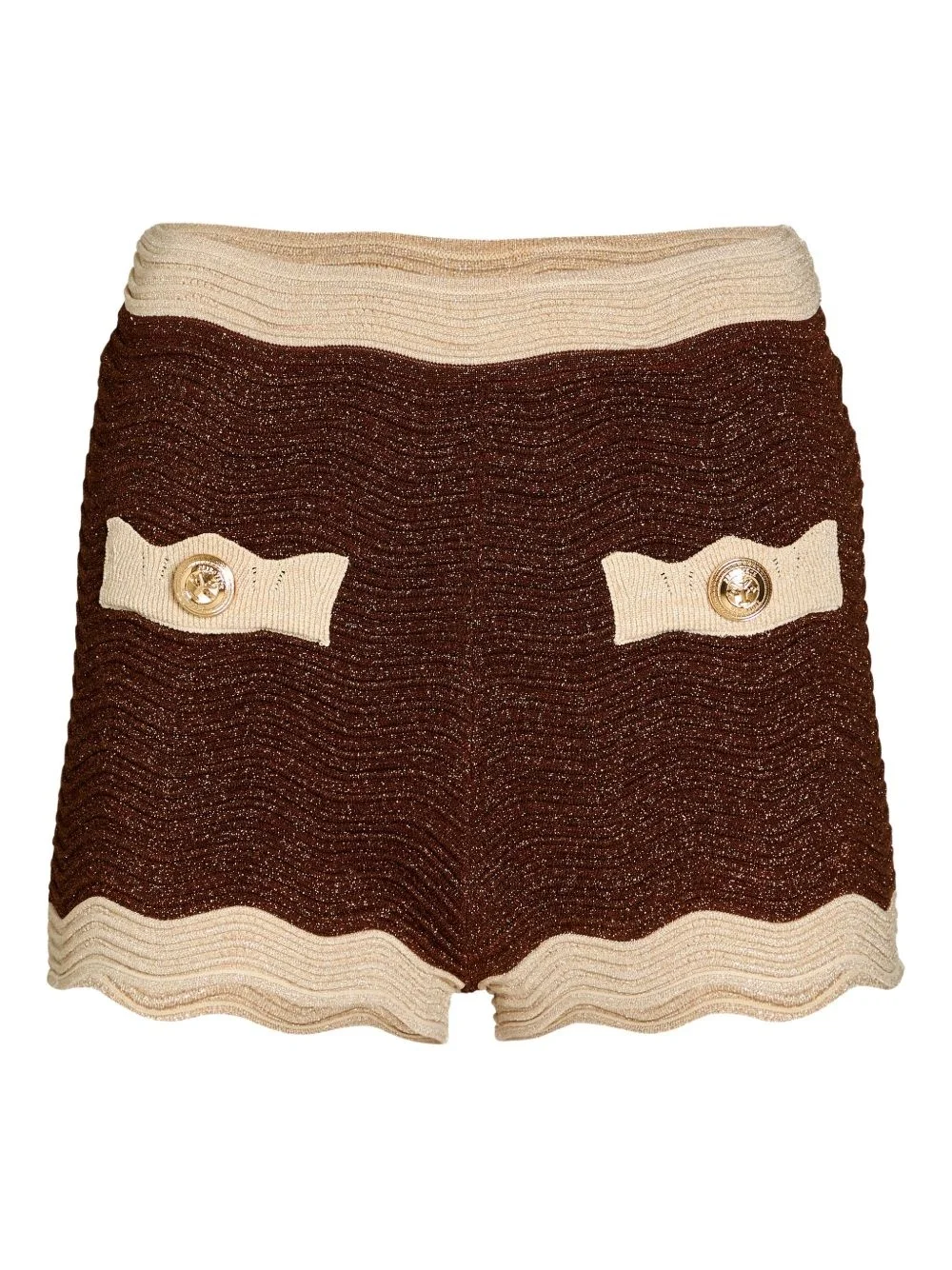 Kait shorts Highlights - Brown - Elasticated waistband - Knitted construction - Faux pocket detail Imported Composition Rayon 60%, Nylon 32%, Metallic Fibre 5%, Spandex/Elastane 3%