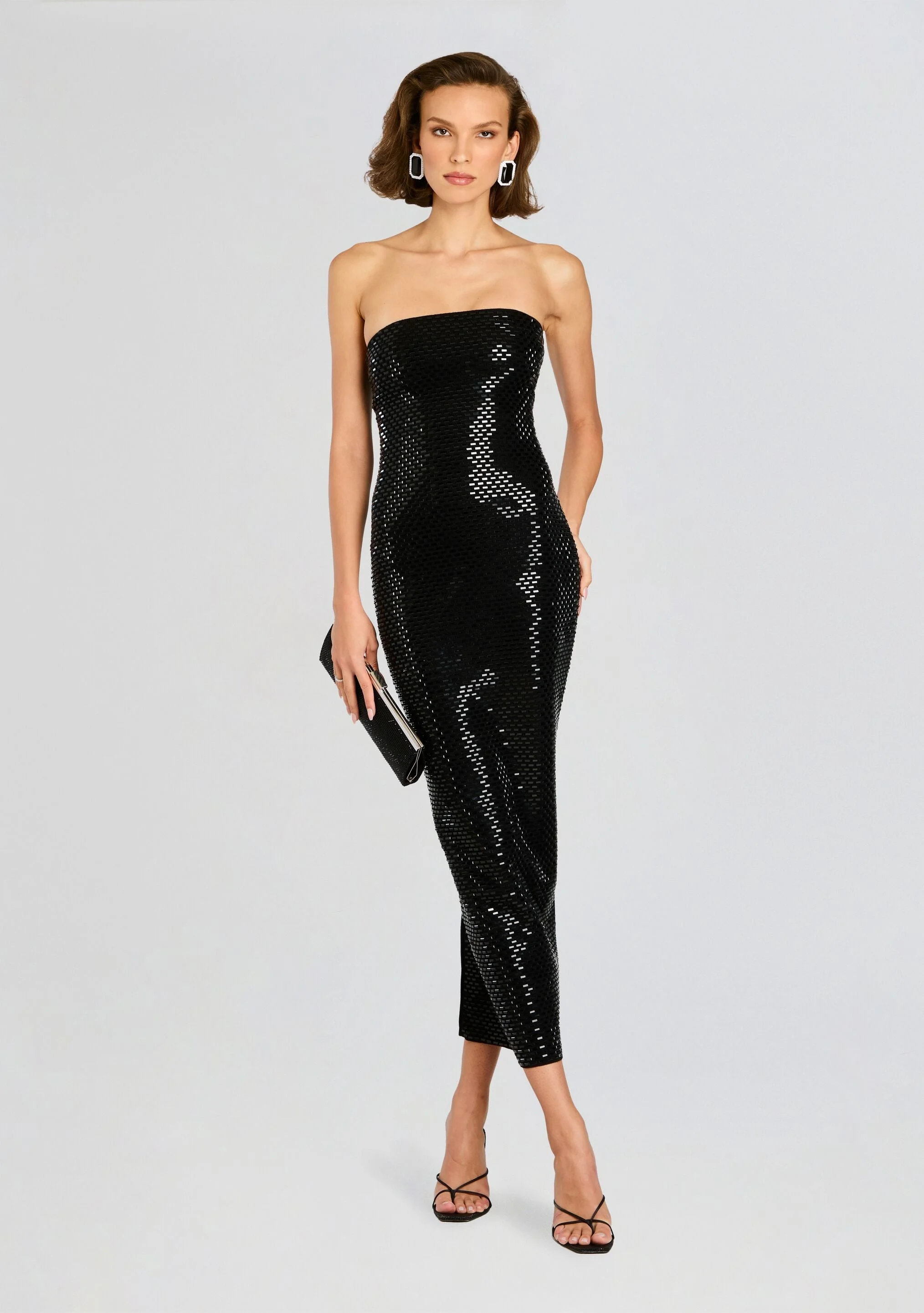 Indulge in the luxurious elegance of the Karrah Embellished Knit Dress. This strapless stunner features intricate hotfix embellishments that add a touch of sophistication to any night out. Made from high-quality knit fabric, it's the perfect choice for a glamorous and stylish look. - 54.5% Nylon, 20% PPT, 16% Anti Pilling Acrylic, 9.5% Ultrafine Wool - Model is 5'10 wearing size S - Made In China - Style No. - HL25-8046