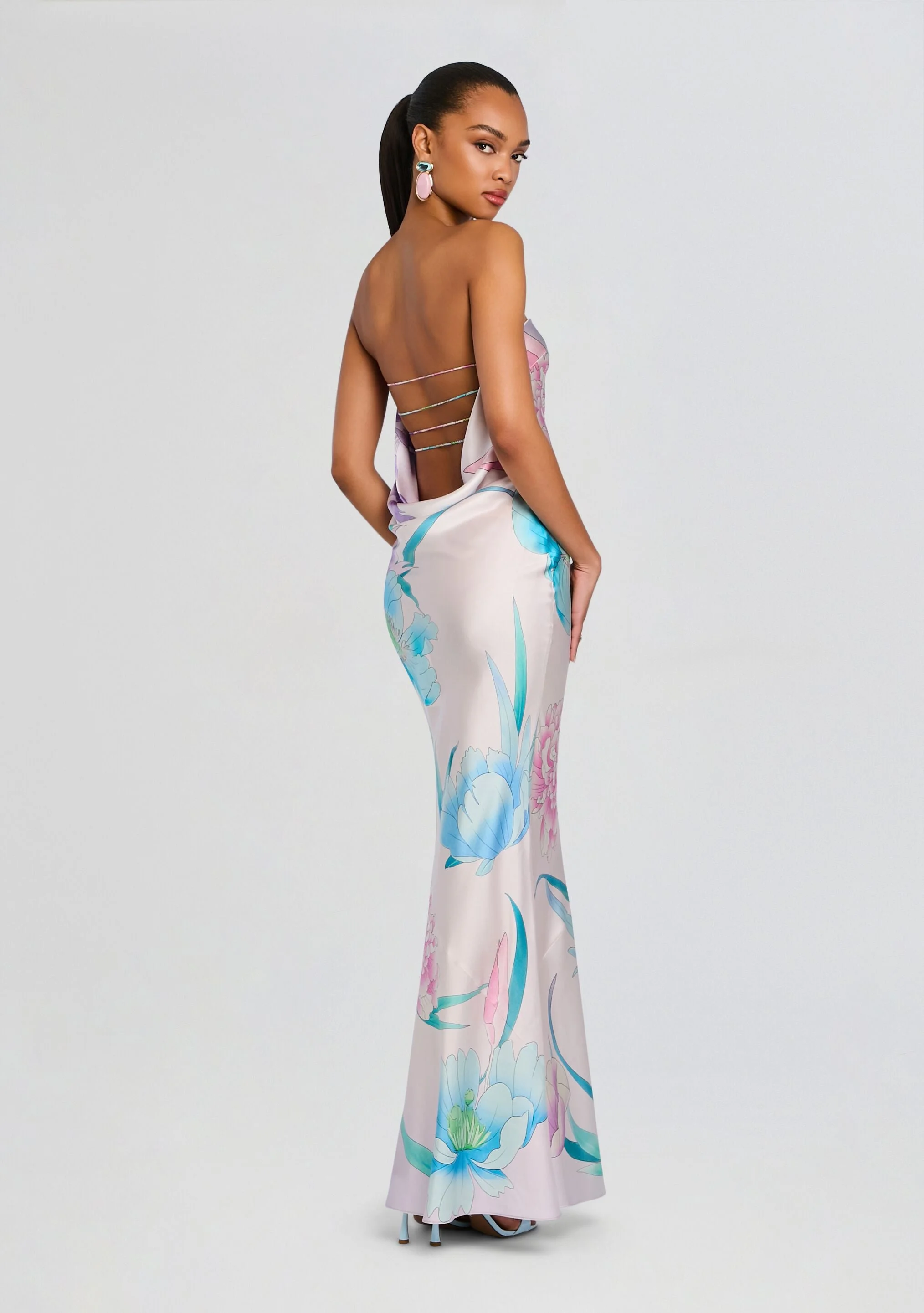 Indulge in elegance and allure with our Keaton Dress. Elevate your style with this exquisite gown boasting a flattering strapless neckline, an alluring open back, and crafted from a sumptuously silky fabric. Designed to captivate attention, this dress embraces sophistication and sensuality. The strapless silhouette offers a chic and elegant appeal while the open back adds a touch of allure, ensuring you radiate confidence and charm. Shown here in Beija Flor Rosa. - Runs large — those who wear Medium typically prefer a Small. - 95% Silk, - 5% Spandex - Made in China - Model is 5'10" wearing size S - Style No. - SS24-6560