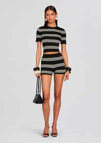 About SER.O.YA Established in 2020, SER.O.YA is a New York-based ready-to-wear label founded with the intention to upgrade and refine your wardrobe. With a focus on crafting effortlessly cool and timelessly luxurious designs—SER.O.YA creates minimalist collections powered by maximum style. Everyday essentials in the form of breathable knits, vintage inspired denim, and ultra-luxe fabrications are interchangeably worn for easy dressing that never compromises. With versatility at its core, the brand’s simple yet significant aesthetic comes through in classic silhouettes that are anything but conventional. - 60% Polyester, 40 Viscose - Made in China - Model is 5'10" wearing size S - Style No. - S-SS25-4731-15