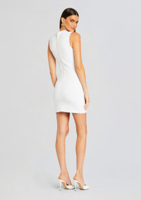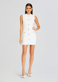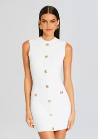 Embrace effortless chic in our Laurel Dress. This sleek white mini dress is designed with a flattering sleeveless silhouette and an eye-catching button-down front. Crafted from a comfortable knit fabric, it's the perfect choice for a night out or special event. Shown here in Optic White. - 63% Rayon, 34% Nylon, 3% Spandex - Made in China - Model is 5'10" wearing size S - Style No. PF24-9252