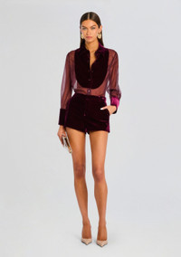 - 100% Silk - Velvet trims - Made in China - Model is 5'11" wearing size S - Style No. - FW24-10118