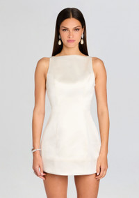 Indulge in luxury with our Livie Dress. Crafted from a rich cream satin fabric, this mini dress boasts a flattering fit and flare silhouette, making it the perfect choice for any occasion. - 76% Acetate, 24% Polyester - Made in China - Model is 5'11" wearing size S - Style No. - FW24-9767