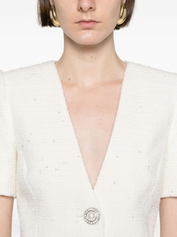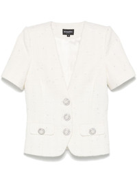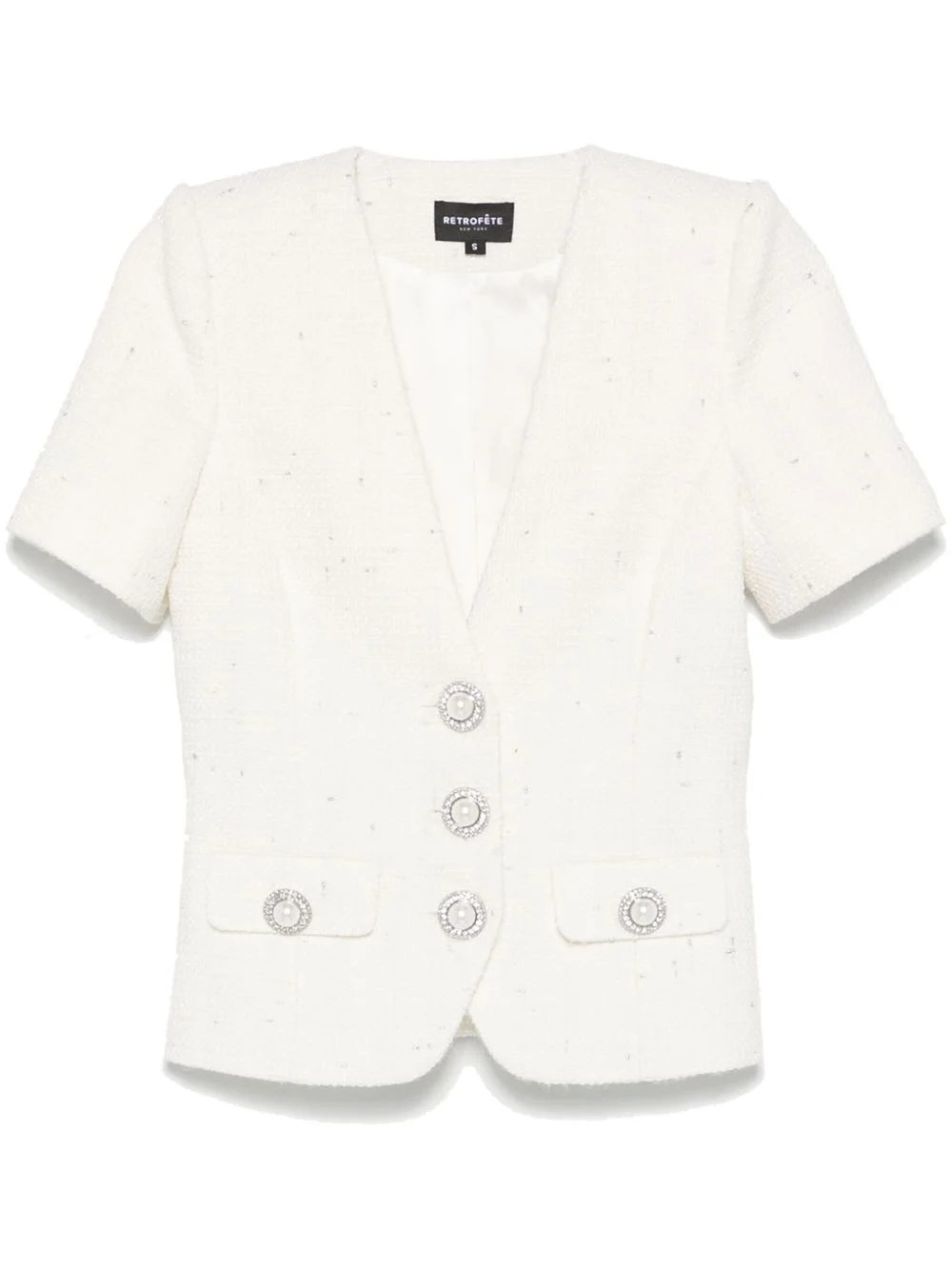 Makenna Tweed shirt Highlights - White - Front button fastening - Two front flap pockets - Plunging v-neck - Faux-pearl embellishment Imported Composition Outer: Polyester 53%, Wool 46%, Metallised Fibres 1% Lining: Polyester 97%, Spandex/Elastane 3% SIZE & FIT Model measurements Height 5 ft 10 in(1.77 m) Bust/Chest 31.1 in(79 cm) Hips 34.64 in(88 cm) Waist 24.01 in(61 cm) FittingInformation Designed for a slim fit that sits just away from the body offering a close yet comfortable fit The internal shoulder pads offer a structured shape Made from a midweight fabric