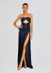 Step into the spotlight with our Mallory Dress, a captivating ensemble crafted to exude grace and sophistication. Featuring a seductive slit and subtle cutout detail, this gown boasts a flattering silhouette that effortlessly enhances your natural beauty, making it the epitome of timeless glamour. Shown here in Ink. - 95% Polyester, 5% Spandex - Made in China - Model is 5'10" wearing size S - Style No. - SS24-8310