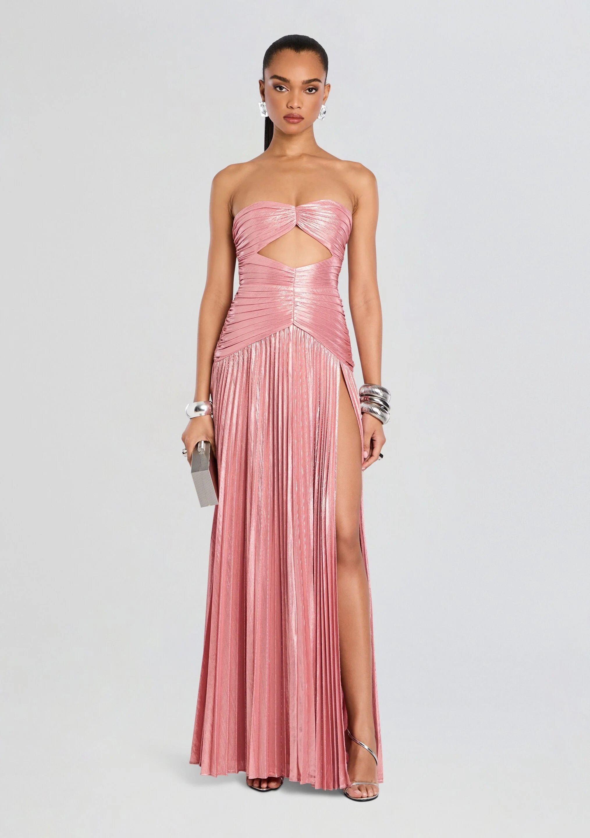 Step into the spotlight with our Mallory Dress, a captivating ensemble crafted to exude grace and sophistication. Featuring a seductive slit and subtle cutout detail, this gown boasts a flattering silhouette that effortlessly enhances your natural beauty, making it the epitome of timeless glamour. Shown here in Earl Rose. - 95% Polyester, 5% Spandex - Made in China - Model is 5'10 wearing size S - Style No. - SS24-8310