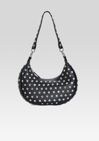 The Maybelle Leather Bag is the epitome of understated luxury. Crafted from supple leather, this hobo bag features dazzling crystal embellishments that catch the light with every move. Spacious and stylish, it’s the perfect companion for both day and night. Shown here in Black. - 100% Leather - Made in China - Style No. HB24-9621