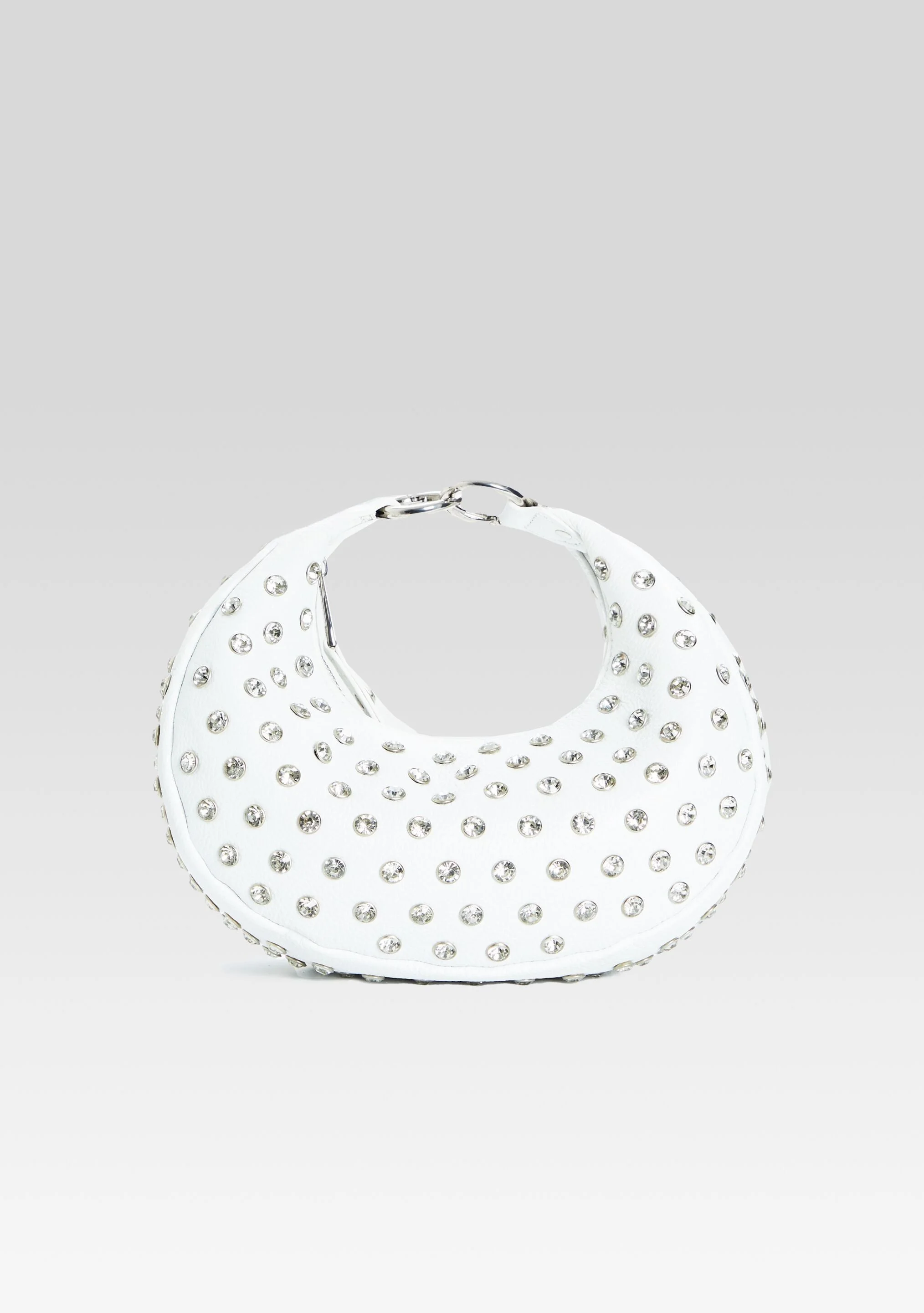 The Maybelle Leather Bag is the epitome of understated luxury. Crafted from supple leather, this hobo bag features dazzling crystal embellishments that catch the light with every move. Spacious and stylish, it’s the perfect companion for both day and night. Shown here in White. - 100% Leather - Made in China - Style No. HB24-9621