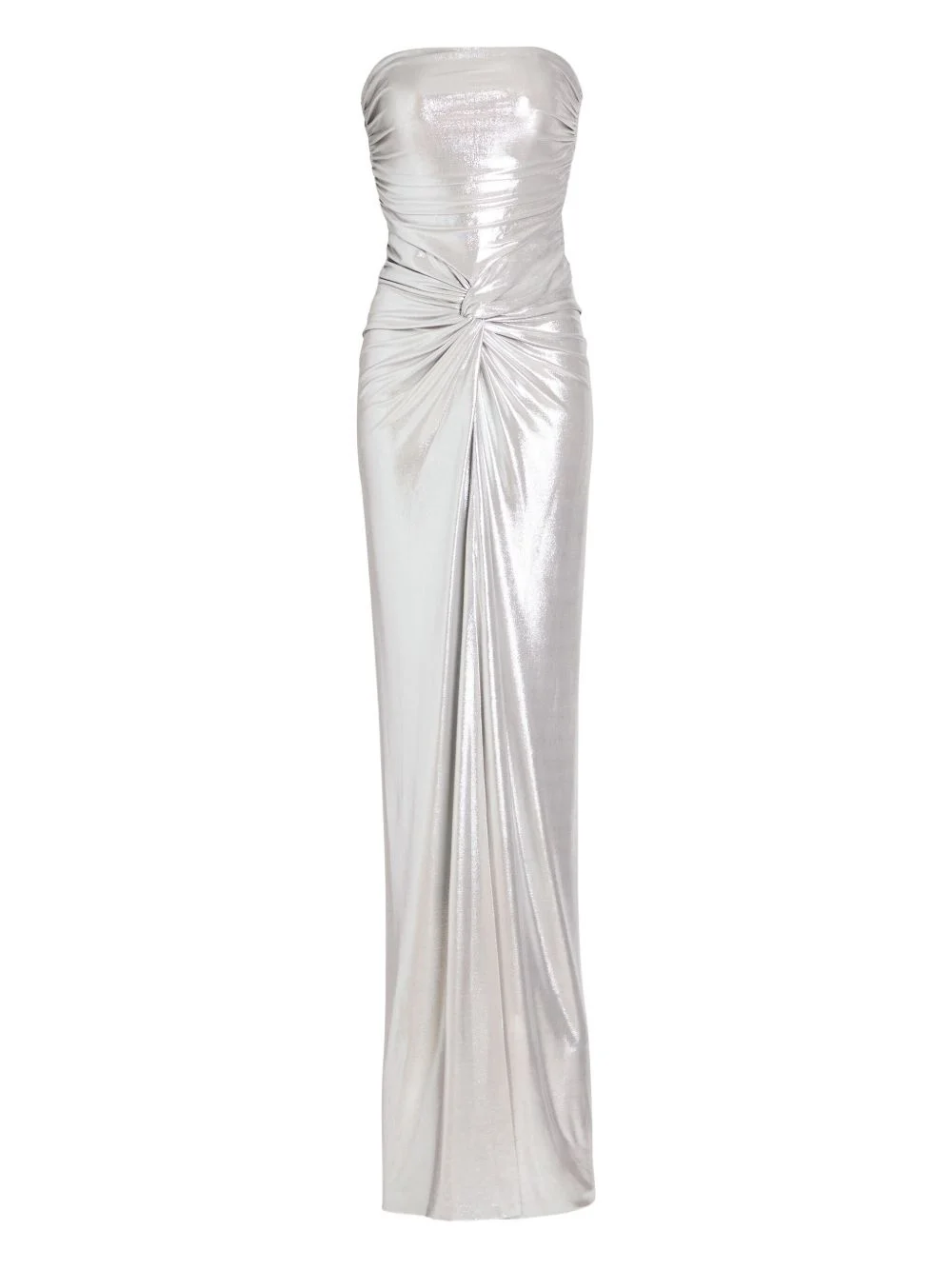 Maytal dress Highlights - Silver-tone - Stretch-design - Strapless - Front slit - Demi-train Imported Composition Polyester 92%, Spandex/Elastane 8%