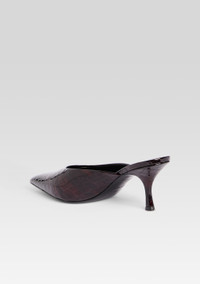 Introducing our Bonnie Leather Mule, crafted from luxurious croco embossed leather. With a comfortable and flattering heel height, these mules are both stylish and practical. And the pointed toe adds a touch of elegance to any outfit. - Leather upper - Made in Italy - 75mm heel height - Style No. - FW24-10091 _SH