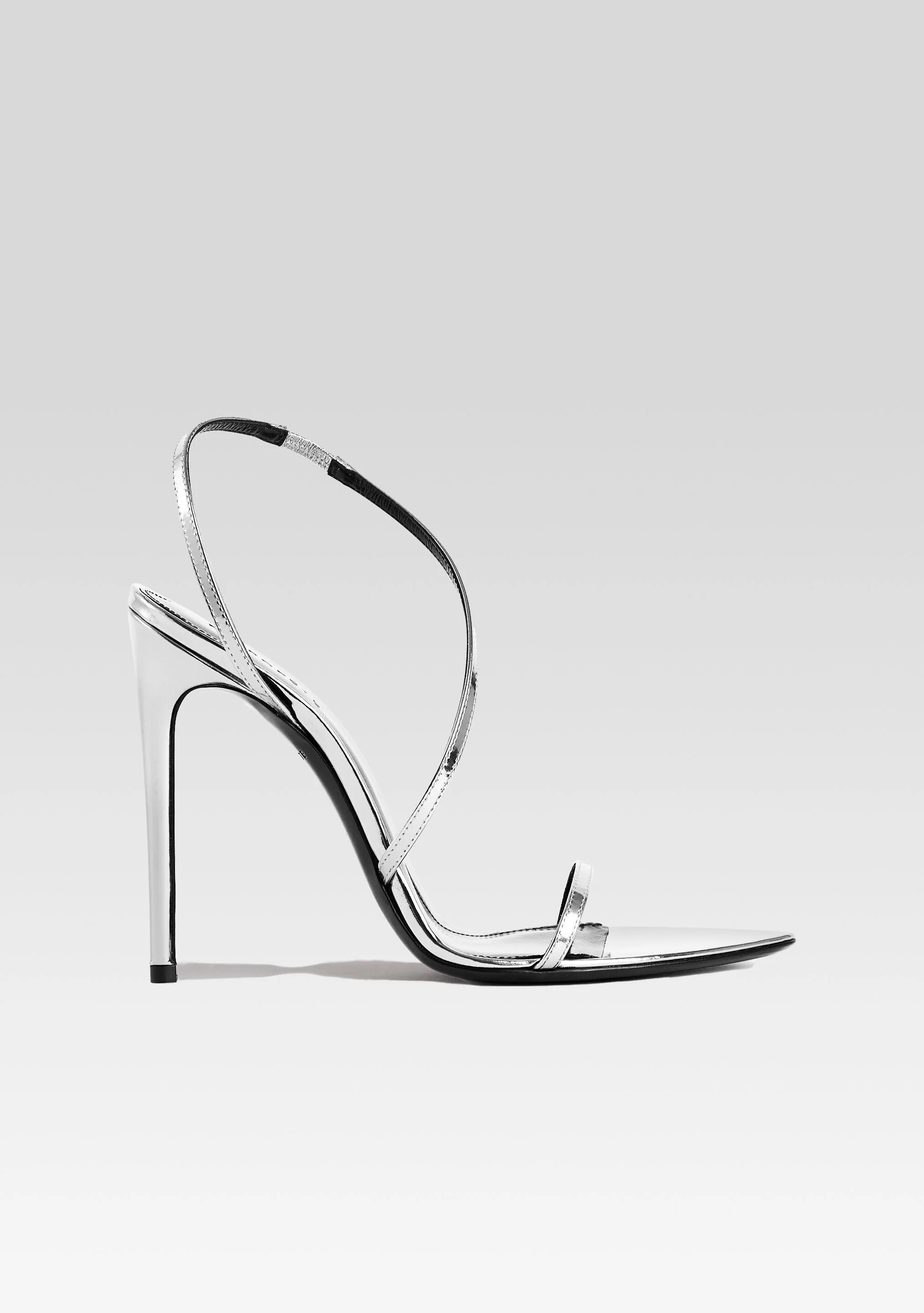 Experience the chic sophistication of our Naomi Sandals. Whether you're attending a special event or simply looking to enhance your daily attire, these heels are designed for those who appreciate timeless style with a modern twist. Shown here in Silver. - Leather upper and leather lining - 110mm heel height - Made in Italy - Style No. SH24-8700 - *Please note that our footwear is Italian sizing and runs small, we recommend sizing up by one size