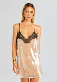 Radiate elegance in our Olive Dress. This luxurious cocktail dress features a delicate lace bodice with a flattering, all over sequin silhouette. The adjustable straps ensure a perfect fit, while the flowing silhouette creates a graceful and feminine look. Shown here in Cream. - 100% Polyester - Made in China - Model is 5'10" wearing size S - Style No. PF24-9570