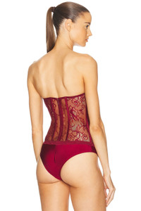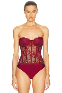 Details - Self 1: 87% nylon, 13% spandex - Self 2: 100% nylon - Self 3: 90% nylon, 10% spandex - Self 4: 100% polyester - Self 5: 95% silk, 5% spandex - Self 6: 89% polyester, 11% spandex - Made in China - Dry clean only - Hidden back zipper closure - Gusset button snap closure - Bustier design - Lace fabric - Our Style No. RTFF-WS143 - Manufacturer Style No. FW23-7926