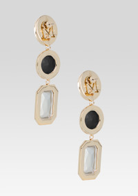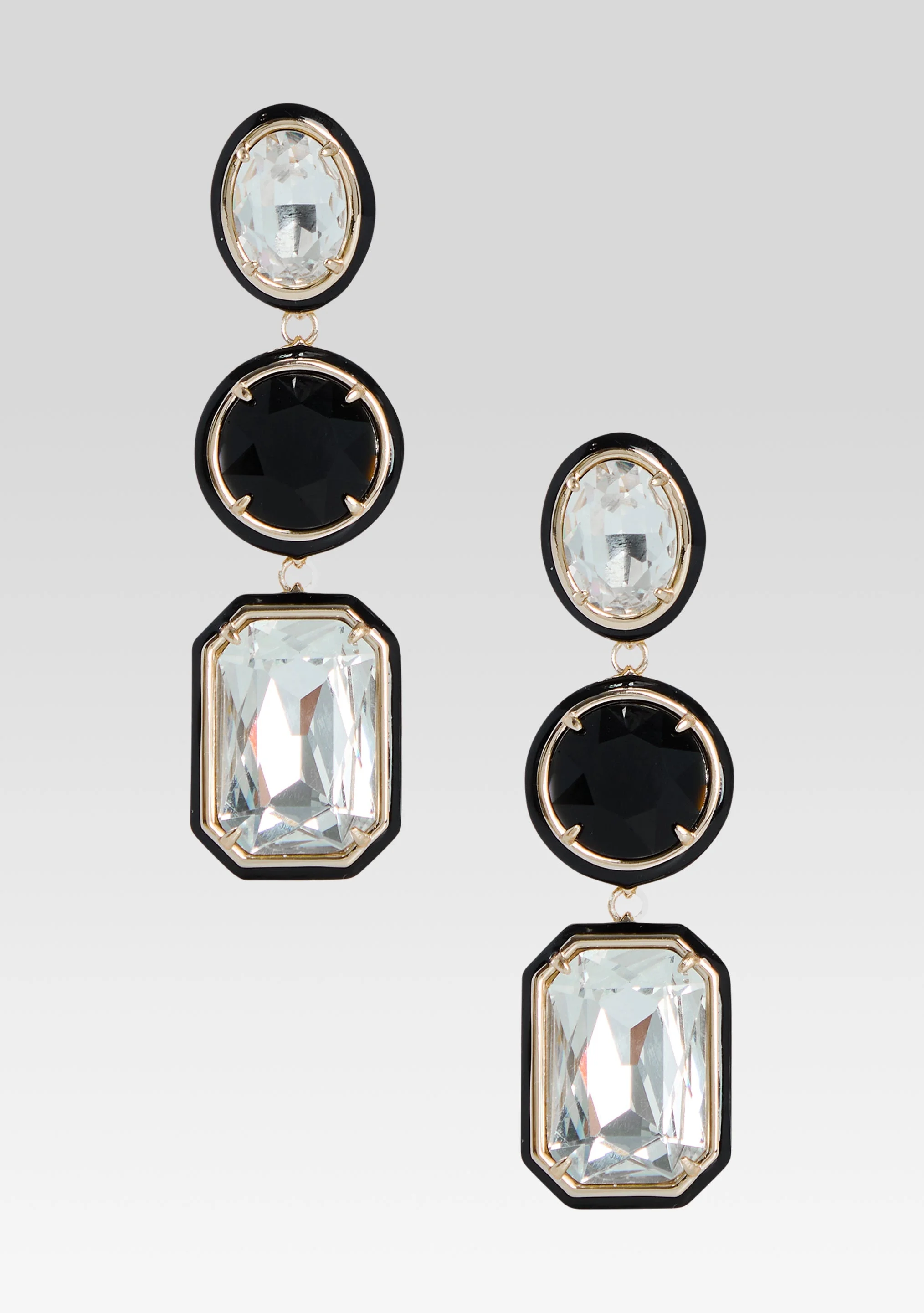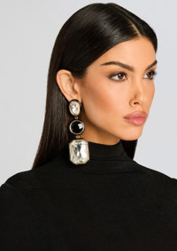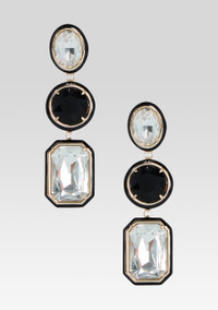 Indulge in the ultimate luxury with our Camille Gemstone Drop Earrings. These stunning earrings feature large gemstone drops that catch the light with every movement, and are accentuated by delicate gold detailing. Add a touch of elegance to any outfit with these exclusive and sophisticated earrings.NOTE: These earrings are sold as a pair. - Silver Tone Metal with Glass and Black Stones - Made in China - Style No. - HL25-10779-ACC