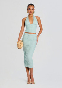 About SER.O.YA Established in 2020, SER.O.YA is a New York-based ready-to-wear label founded with the intention to upgrade and refine your wardrobe. With a focus on crafting effortlessly cool and timelessly luxurious designs—SER.O.YA creates minimalist collections powered by maximum style. Everyday essentials in the form of breathable knits, vintage inspired denim, and ultra-luxe fabrications are interchangeably worn for easy dressing that never compromises. With versatility at its core, the brand’s simple yet significant aesthetic comes through in classic silhouettes that are anything but conventional. - 90% Polyester, 10% Spandex - Made in China - Model is 5'10" wearing size S - Style No. - S-SS25-4167-16