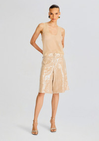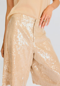Make a statement in our effortlessly cool Presely Short, designed for the modern woman who craves both comfort and glamour. Crafted from a luxurious blend of nylon and spandex, these shorts offer a flattering fit and effortless movement. The all-over sequin embellishment adds a touch of playful sophistication, perfect for elevating any outfit. Shown here in Nude. - 87% Nylon, 13% Spandex - Made in China - Model is 5'11" wearing size S - Style No. - PF24-9242 - **Runs large. We recommend sizing down 1 size.