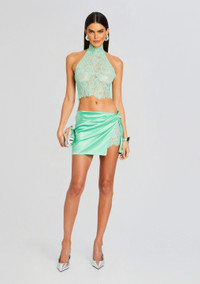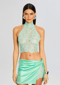 Discover elegance with our Violet Top, boasting delicate lace and a stylish open back. This top is a true fashion statement, combining the allure of lace with a modern edge. The halter neckline and open back design make it a versatile choice, suitable for both casual outings and dressy affairs. Shown here in Pistachio. - 100% Nylon - Made in China - Model is 5'10" wearing size S - Style No. - HL24-8386
