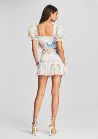 The Yane Short Skirt was made for all your dream destinations. Made from 100% cotton voile, this mini is a lightweight and breathable style with a shirred, fitted waist, and a floaty guipure tiered hem. Pair it with the Xanda Bustier for a playful, co-ord look. Shown here in Garden White Print. About Charo Ruiz Ibiza Established in 1989, Charo Ruiz is a resort wear brand renowned for its luxe Spanish designs. Characterized by natural fabrics, embroidery, and delicate lace, each piece is inspired by the culture and purity of Ibiza. With an emphasis on local craftsmanship and traditional design, Charo Ruiz aims to create feminine silhouettes that live as long as the memories of the idyllic and eternal island itself. The family owned business continues to push boundaries each season, instilling personality, freedom, and uniqueness into each piece designed. - 90% Cotton, 10% Polyester - Made in Portugal - Model is 5'10" wearing size S - Style No. - 224401