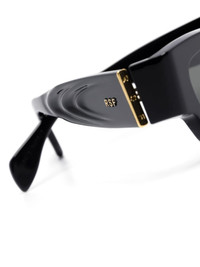 Nameko rectangle-grame sunglasses Highlights - Black - Acetate - Square frame - Uv-protective grey tinted lenses - Logo-engraved arm - Straight arms with curved tips - Textured finish arm - These glasses come with a protective case. Made in Italy Composition Acetate 100% SIZE & FIT Measurement Arm Length 5.51 in(14 cm) Bridge Width 0.51 in(1.3 cm) Lens Diameter 2.2 in(5.6 cm) Total Width 5.82 in(14.8 cm)