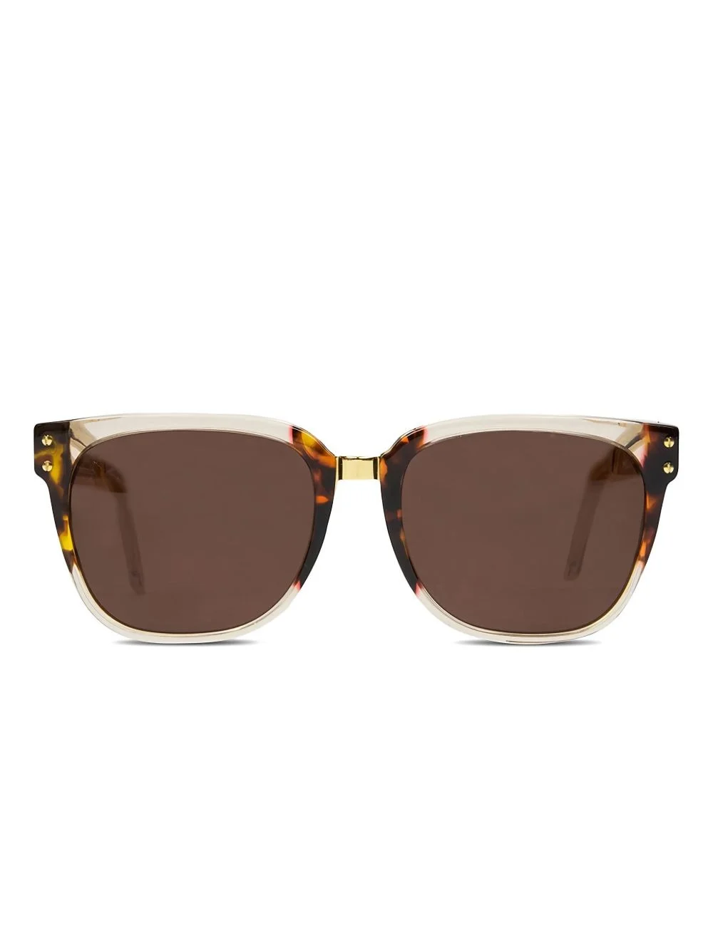 People Francis sunglasses Highlights - Brown - Tortoiseshell pattern - Gold-tone metal arms - Square frame - Tinted lenses - These glasses come with a protective case. Made in Italy Composition Acetate 100% SIZE & FIT Measurement Bridge Width 0.47 in(1.2 cm) Lens Diameter 2.04 in(5.2 cm) Arm Length 5.66 in(14.4 cm)