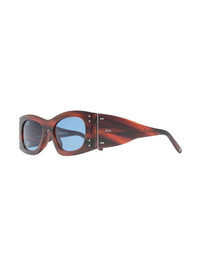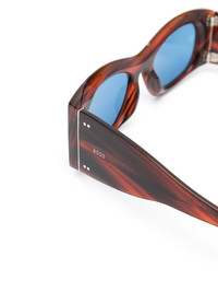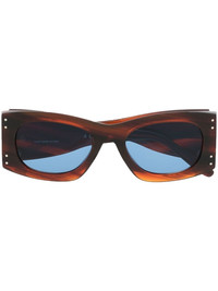sculpted-design sunglasses dark brown acetate logo print at the arm square frame blue tinted lenses straight arms curved tips Made in Italy Composition Acetate 100% SIZE & FIT Measurement Arm Length 5.7 in(14.5 cm) Bridge Width 0.78 in(2 cm) Lens Diameter 2 in(5.1 cm) Total Width 5.59 in(14.2 cm)