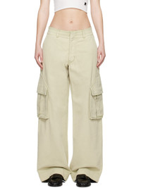 Cotton twill cargo pants. Fading throughout. · Belt loops · Four-pocket styling · Zip-fly · Bellows pocket at outseams · Contrast stitching in green Supplier color: Beige 100% cotton. Made in United States 241923F087007