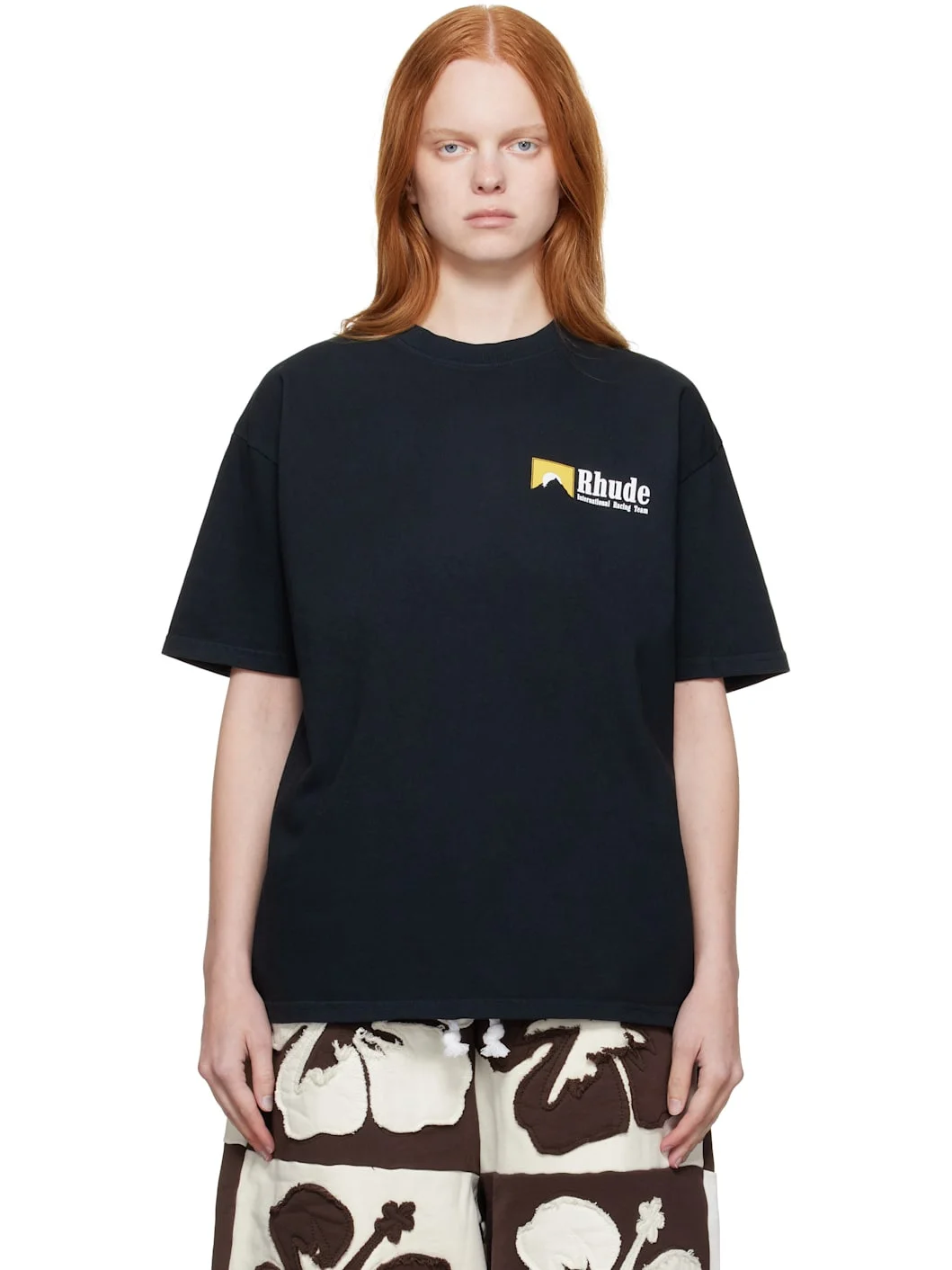 Cotton jersey T-shirt. · Fading throughout · Rib-knit crewneck · Logo, text, and graphic printed at chest · Dropped shoulders Supplier color: Vintage black 100% cotton. Made in United States 252923F110004