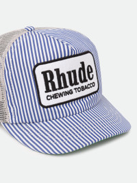 BLUE STRIPED TOBACCO TRUCKER HAT