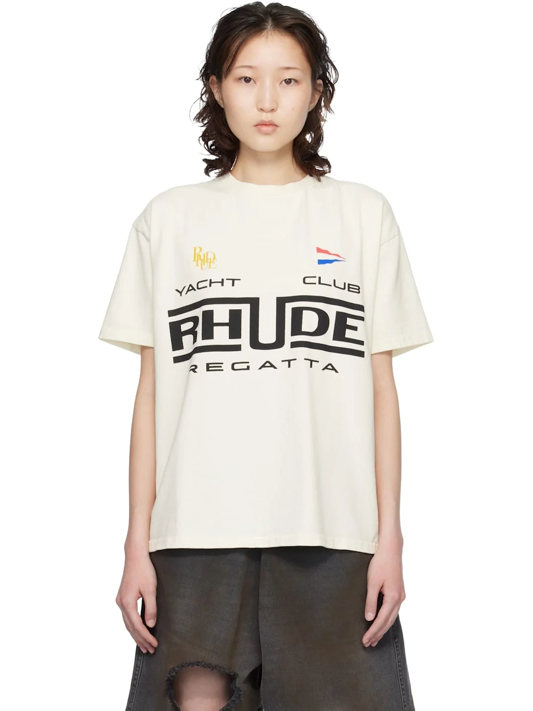 Cotton jersey T-shirt. · Rib-knit crewneck · Logo and text printed at front · Dropped shoulders Supplier color: Vintage white 100% cotton. Made in United States 261923F110013