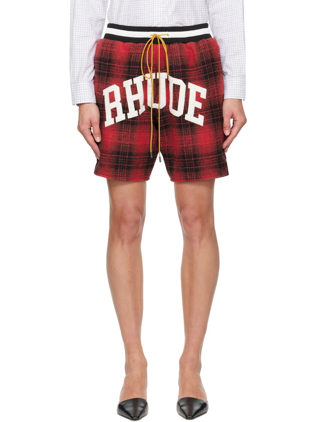 Red & Black Flannel 'Rhude' Collegiate Court Logo Shorts