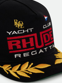 Heavyweight vintage cap with embroidered Rhude Regatta Yacht Club design on the front, with leaves embroidered on the bill. Features an adjustable strap at the back, so you can adjust the fit to your preference, and green under brim. 100% COTTON / 65% Polyester, 35% Cotton Twill