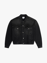 Premium women's denim jacket featuring a custom Rhude leather back patch, twin patch pockets, side pockets at front, and custom Rhude button closures. Hand made in Los Angeles from premium materials. 100% COTTON DENIM WE RECOMMEND TAKING YOUR STANDARD SIZE DRY CLEAN ONLY CARE INSTRUCTIONS ' SIZING `