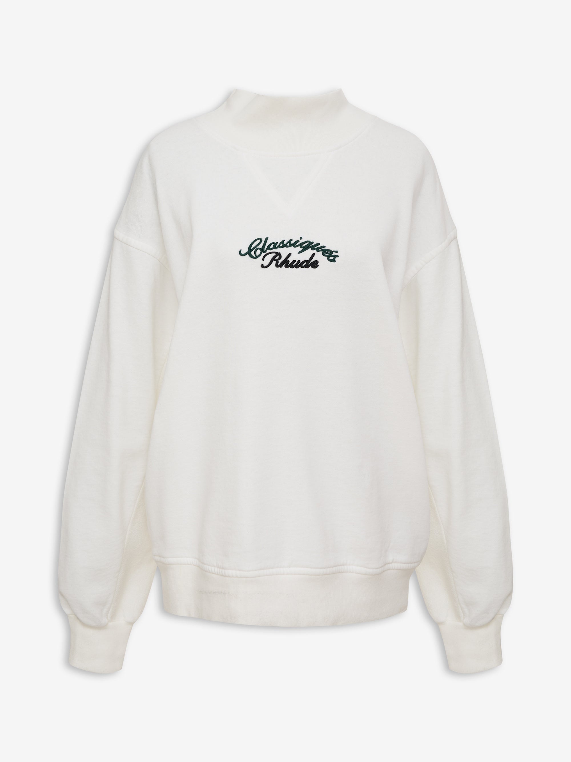 LONG SLEEVEFRENCH TERRY TURTLENECK WITH PULLOVER STYLING. CLASSIQUES RHUDE SCRIPT EMBROIDERED AT FRONT CHEST. FEATURING RIBBED WAIST AND CUFFS, AND DROPPED SHOULDERS. CARE 100% FRENCH TERRY COTTON DRY CLEAN ONLY. SIZING STANDARD FIT. WE RECOMMEND TAKING YOUR STANDARD SIZE.